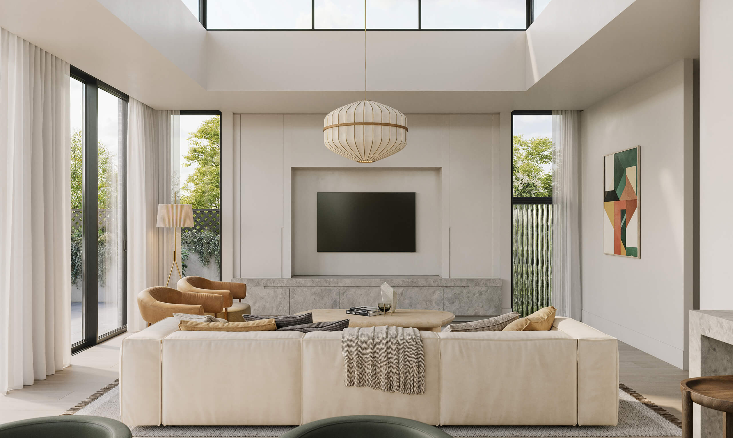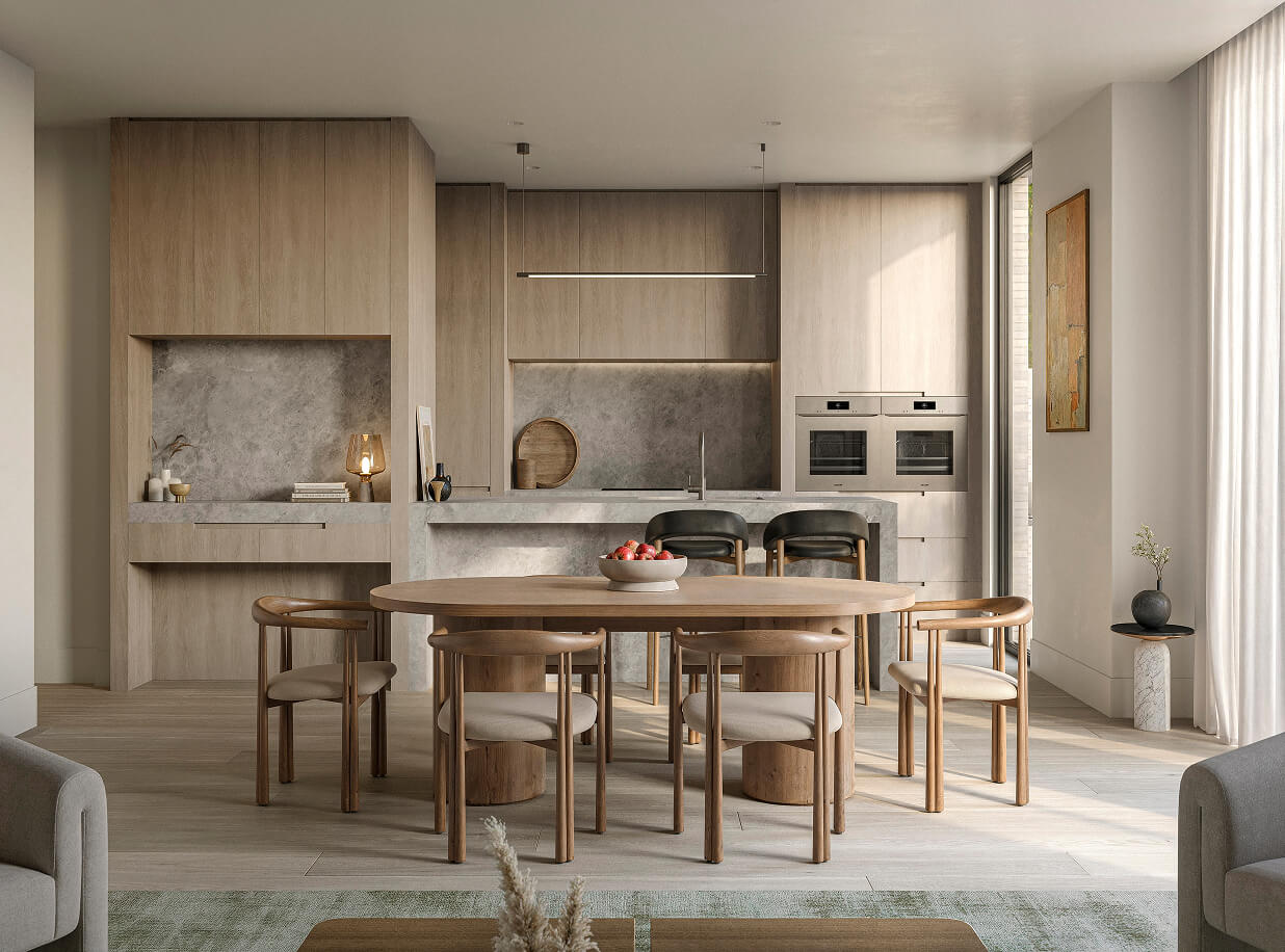 Step into a sanctuary of grand proportions and exquisite details at The Albany, where light-filled interiors and expansive living spaces redefine luxury living. The open-plan living area invites connection, entertainment, and relaxation, all infused with an air of timeless elegance.