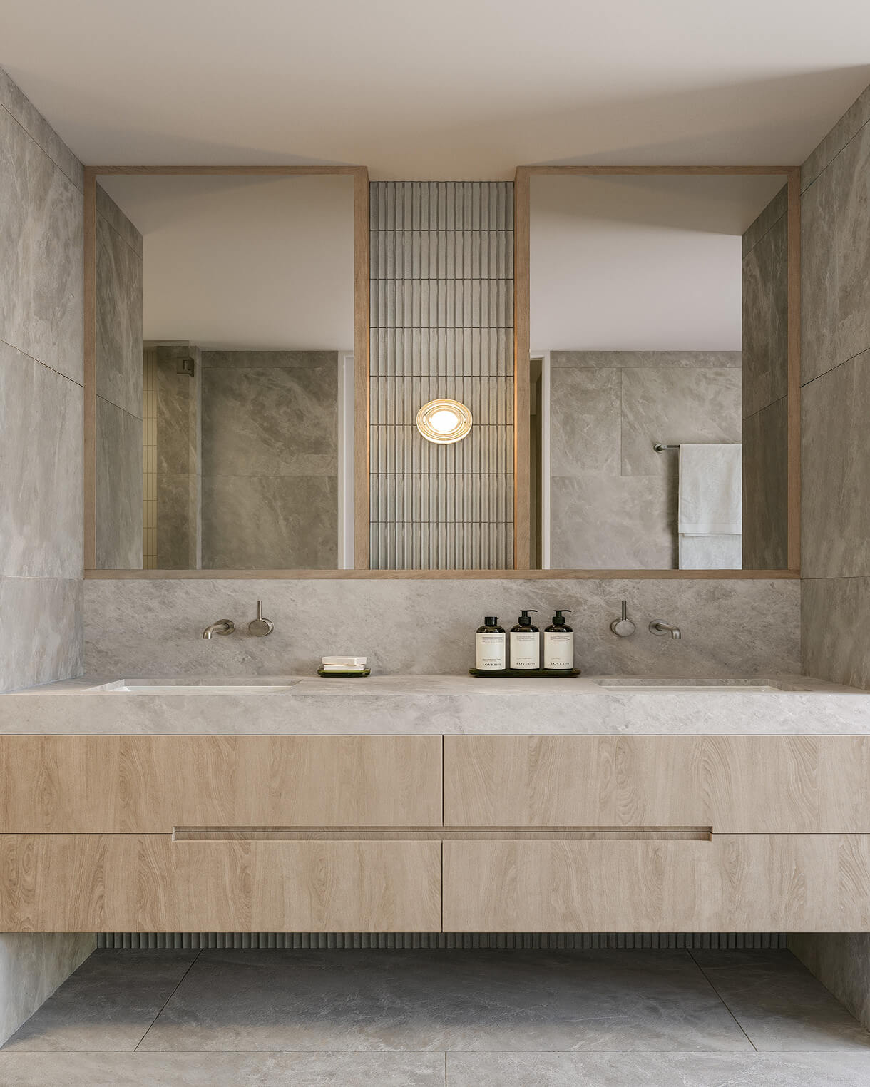 Indulge in the luxurious ensuite, meticulously designed with a selection of premium materials, enhances the beauty of the expertly crafted double vanity, transforming your daily routines into lavish experiences while providing generous storage solutions.