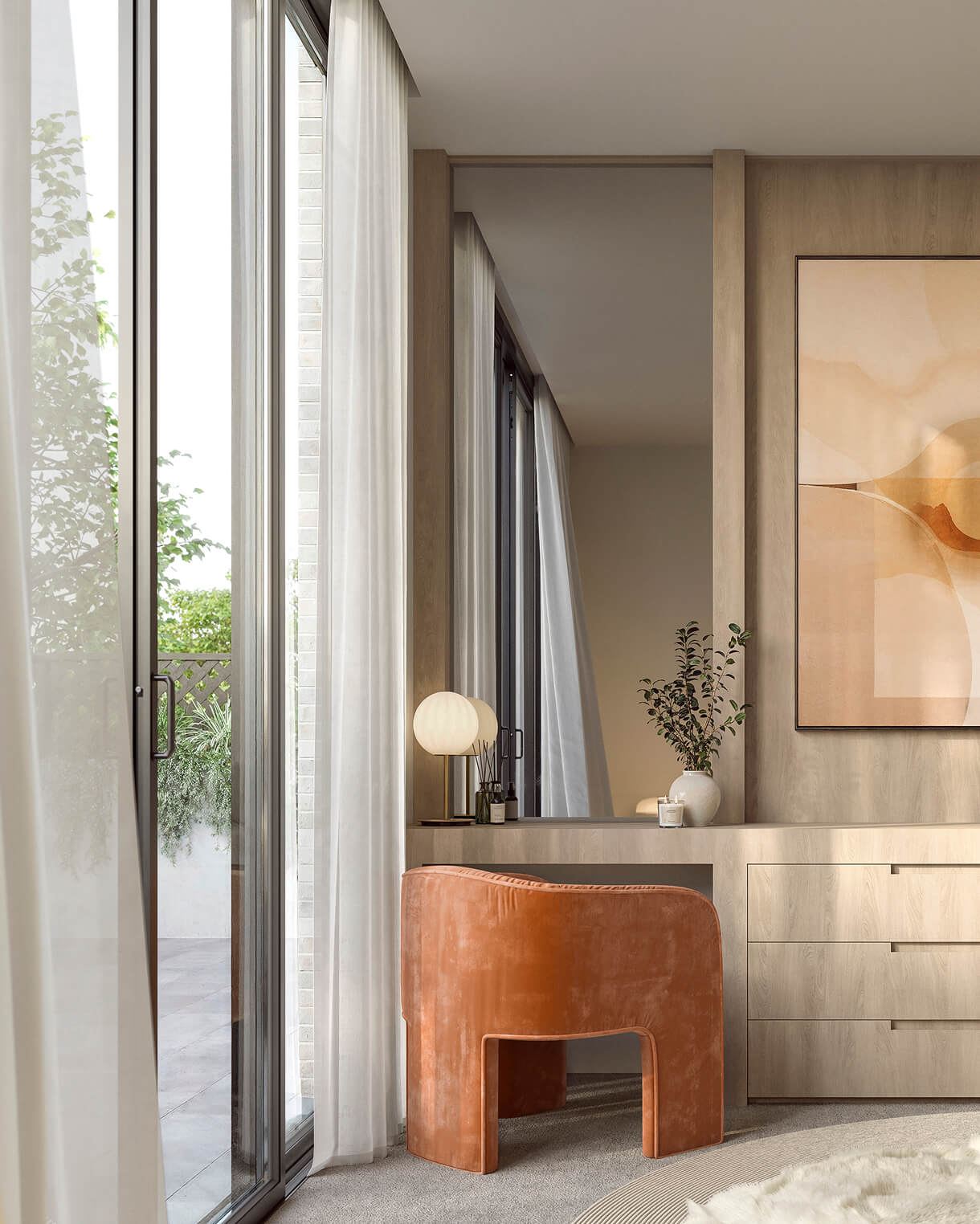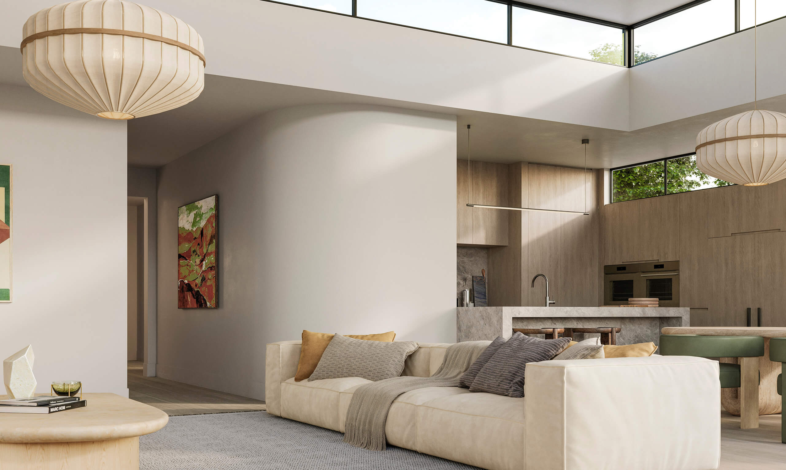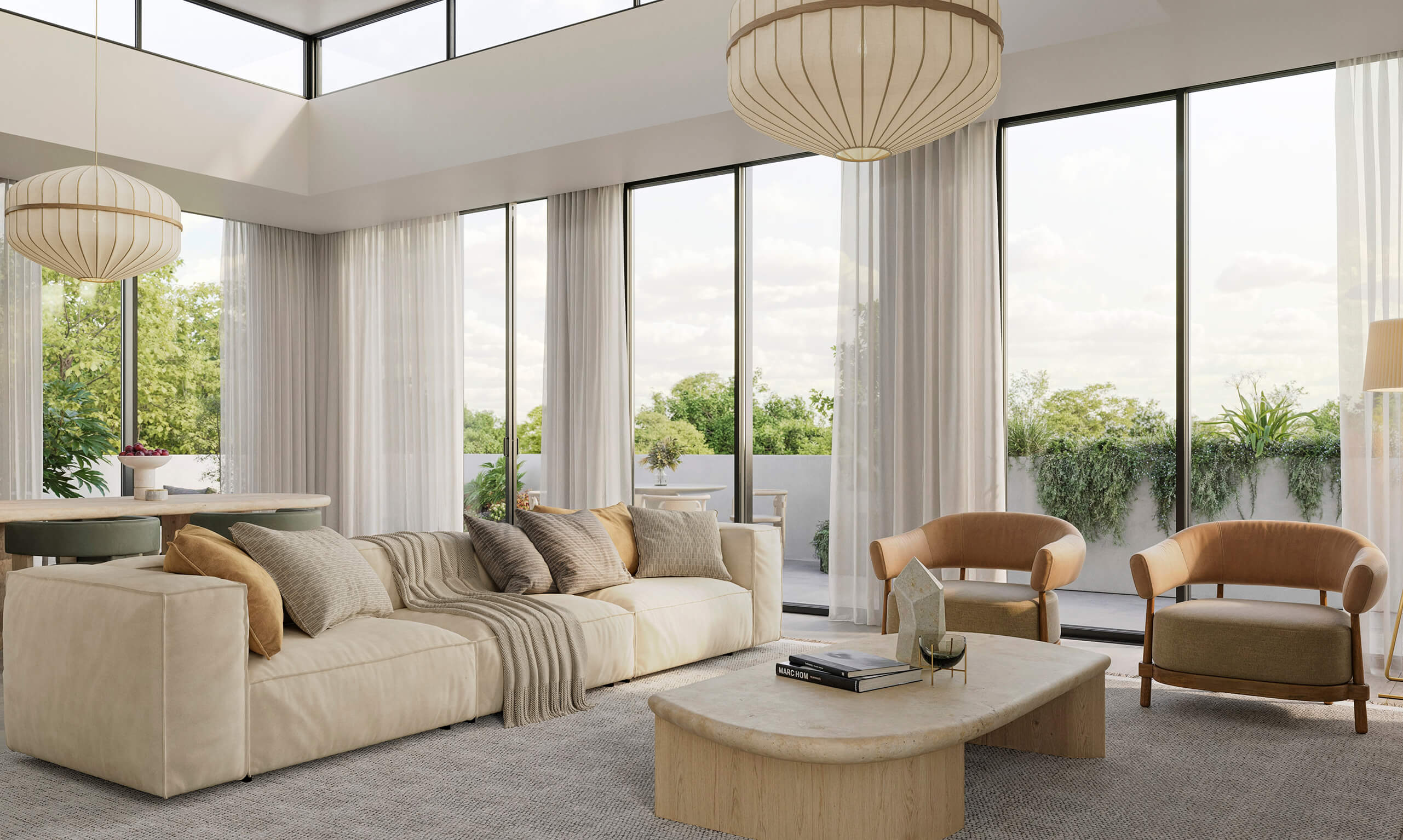 Step into a sanctuary of grand proportions and exquisite details at The Albany, where light-filled interiors and expansive living spaces redefine luxury living. The open-plan living area invites connection, entertainment, and relaxation, all infused with an air of timeless elegance.