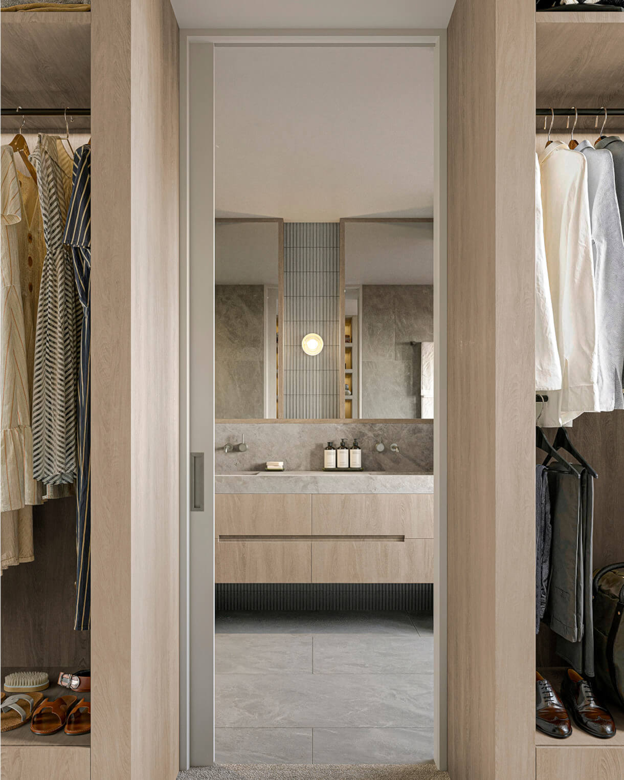 Experience the perfect blend of designer sophistication and modern comfort in the expansive main suite at The Albany — a sanctuary where every detail invites you to relax and rejuvenate in style. Plush wool carpets create a warm and inviting atmosphere, leading you to a luxurious walk-in robe with a range of storage options that keep your wardrobe impeccably organised.